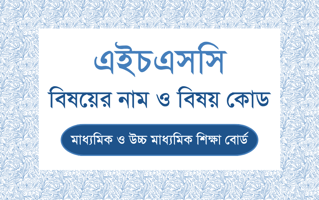 উচ্চ মাধ্যমিক / এইচএসসি এর পঠিত বিভিন্ন বিষয়ের নাম ও বিষয় কোড
